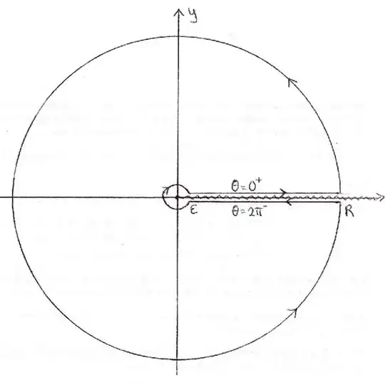wrapping the positive $x$-axis. Letting the outer radius $R \to \infty$ and using the fact that the jump size across the branch cut satisfies