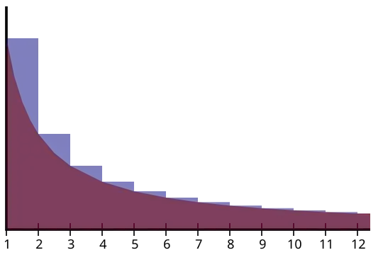 The two functions are $f(x)=\dfrac1x$ and $g(x)=\dfrac1{[x]}$ . The area of the former yields the natural logarithm, and that of the latter, the n-th harmonic number. – Lucian Jul 05 '14 at 23:16