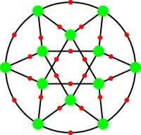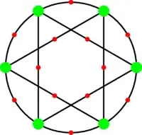 In terms of graph theory, this gives a connected bi-regular graph where the green vertices have degree $[H:H\cap K]$ and the red vertices have degree $[K:H\cap K]$. G acts as automorphisms of the graph, with H the stabilizer of a green vertex, K the stabilizer of a red vertex, and H ∩ K the stabilizer of a directed edge.