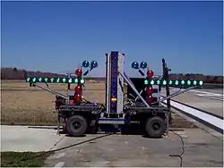 An optical landing system has several related components: the lights used to give visual cues to approaching aircraft, the light control system, and the mounting system.
