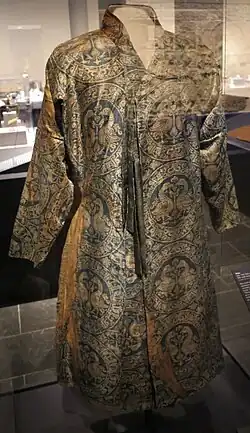 - ^ a b Canby et al. 2016, p. 98: "Paradoxically, however, while the style commonly attributed to the Seljuqs is that of the left-buttoning aqbiya turkiyya, or “Turkish” cut, and although this is the prevailing style of robe in illustrations from contemporary manuscripts, there is perhaps only a single complete robe attributed to the Seljuq period that closes (...) Taken within the context of adab, however, it becomes possible that the adoption of the “Tatar-style” coat was a conscious decision on the part of the affluent sedentary Persian population, as it was less identifiable with the Seljuq Turks. These associations would have been increasingly acute toward the end of the Seljuq period, as a result of the Khwarazm Shah invasions and perhaps exacerbated by the westward migrations of nomadic groups at the start of the Mongol invasion."