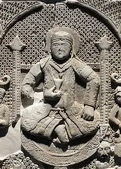In most of their coins, the Seljuk sultans used the Sasanian title of shahanshah (King of Kings), and even used the old Buyid title of "Shahanshah of Islam."[83] The title of malik was used by lesser princes of the Seljuk family.[84] Like the caliphate, the Seljuks relied on a refined Persian bureaucracy.[85] The settlement of Turkic tribes in the northwestern peripheral parts of the empire, for the strategic military purpose of fending off invasions from neighboring states, led to the progressive Turkicization of those areas.[86] According to the 12th-century poet Nizami Aruzi, all of the Seljuk sultans had a liking for poetry, which is also demonstrated by the large compilation of Persian verses written under their patronage. This had already started under Tughril, who was praised in Arabic and Persian by poets such as Fakhruddin As'ad Gurgani and Bakharzi, albeit he could not understand the verses. The last Seljuk sultan Tughril III was well known for his Persian poetry.[87] The Saljuq-nama of Zahir al-Din Nishapuri, which was most likely dedicated to Tughril III, indicates that the Seljuk family now used Persian to communicate, and even were taught about the achievements of their forefathers in that language.[88]