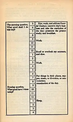 - ^ a b "10 lessons from Benjamin Franklin's daily schedule that will double your productivity". Ladders | Business News & Career Advice. Retrieved August 4, 2020.